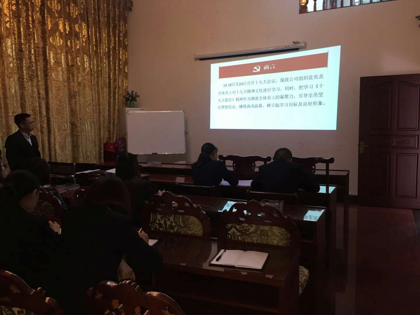 2017年10月27日上午,公司各部門全體人員和項目部經(jīng)理、項目部辦公室人員齊聚公司會議室,在辦公室組織下一起認真學習中國共產(chǎn)黨十九大大會精神,會上從四個方面組織大家進行了認真學習: